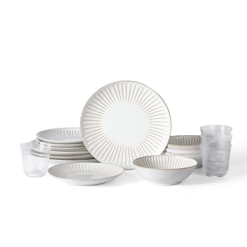 Stone + Lain Linea Stoneware 16-Piece Dinnerware Set, Includes Glassware, White