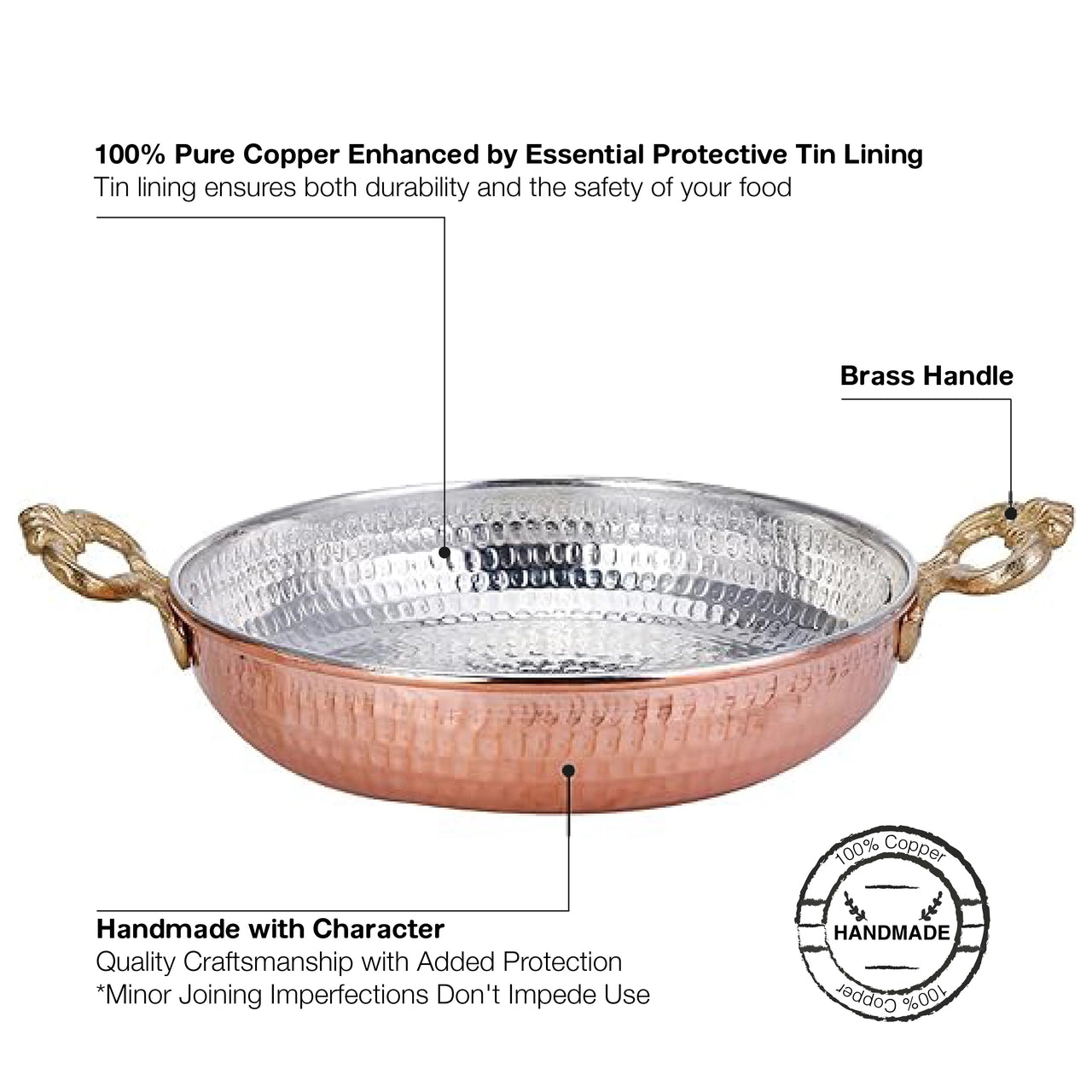 This Copper Handmade Hammered Low Pot is a perfect blend of artistry and functionality. Crafted by skilled artisans in Turkey, each pot features a unique hammered texture that not only enhances its aesthetic appeal but also ensures even heat distribution for superior cooking results. Each pot is meticulously handcrafted, showcasing the timeless beauty of copper while offering durability and a touch of elegance to your kitchen. The hammered finish not only adds a distinctive charm but also helps in maintaining optimal heat levels. Whether you choose the smaller 2-liter version or the generous 4.25-liter size, this Copper Handmade Hammered Low Pot is designed to enhance your cooking experience and bring a touch of luxury to your culinary adventures.