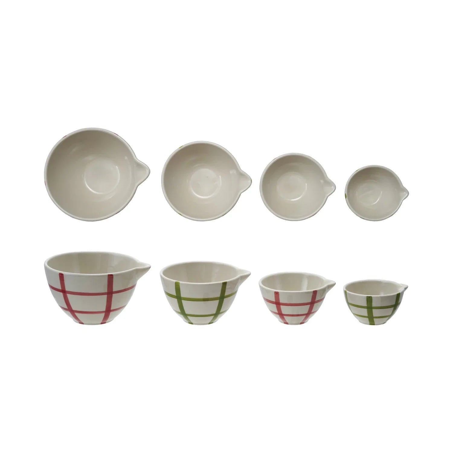 Add a splash of color and charm to your kitchen with this set of four hand-painted stoneware prep bowls. Featuring a fun grid pattern in vibrant red, green, and white, these bowls are perfect for organizing ingredients or serving snacks. Durable and easy to clean, they bring both style and practicality to your cooking adventures.