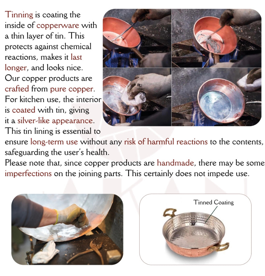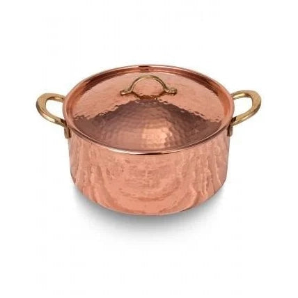 This Handmade Hammered Copper Pot is a true masterpiece of Turkish artisanal craftsmanship. Each pot is meticulously forged and hammered by skilled artisans, ensuring a unique texture and a rustic charm that stands out in any kitchen. The natural properties of copper offer exceptional heat conductivity, making this pot not only beautiful but also highly functional for even cooking and perfect results.