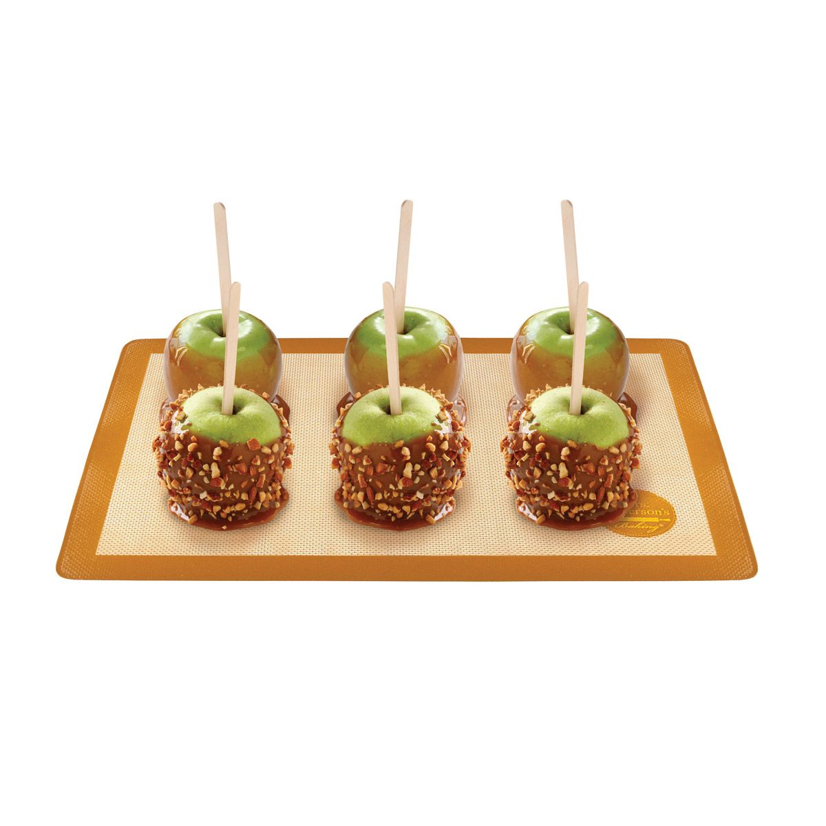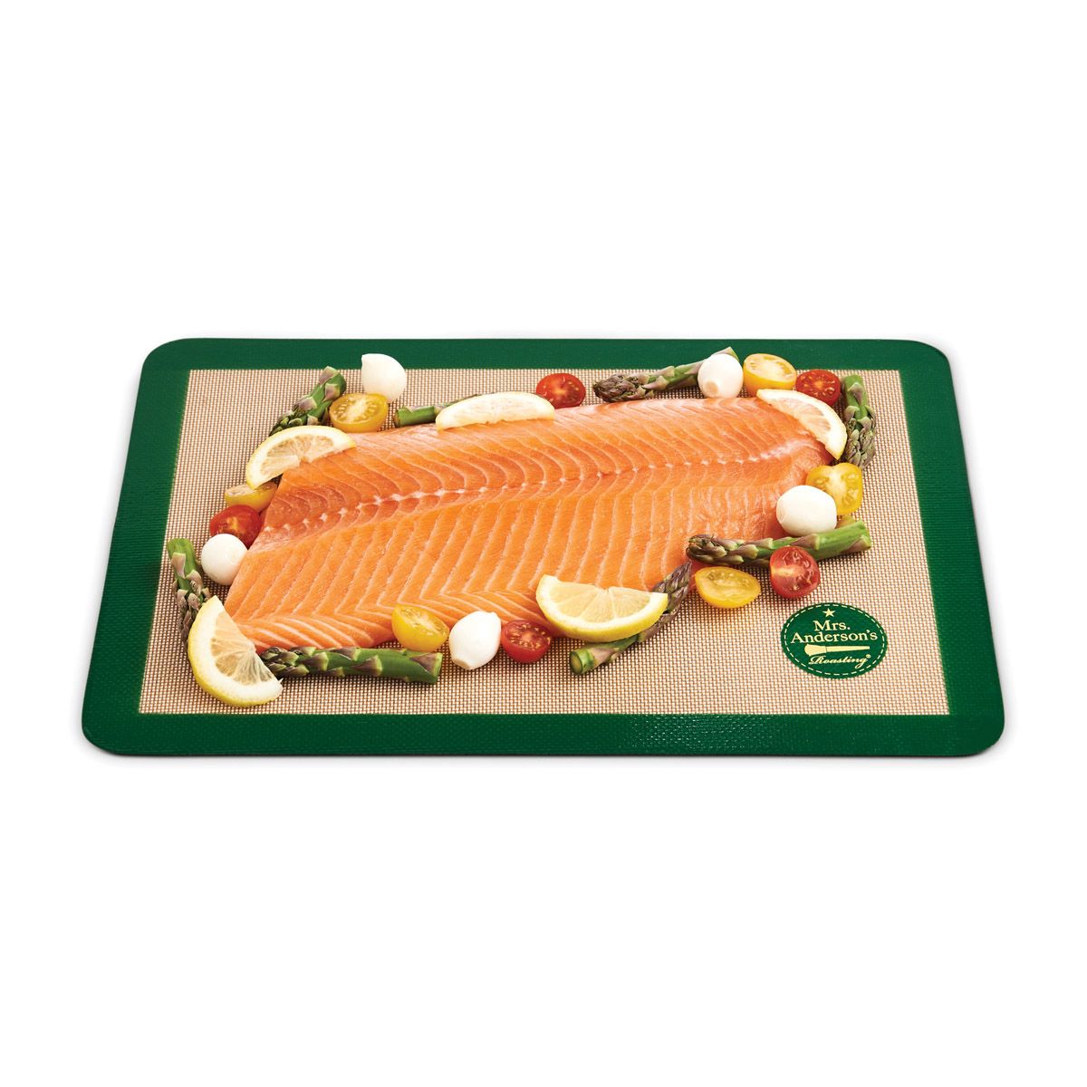 Mrs. Anderson's Non-Stick Silicone Half-Size Sweet and Savory Baking Mats are commercial-grade baking mats designed for the home baker for cooking and baking. Color coded for easy identification, they work in all types of ovens, including conventional and convection. A must-have of baking tools and cooking accessories! The orange mat is perfect for artisan baking, cakes, cookies, breads and pastries. Use the green mat for roasting meats and poultry and baking fish and savory foods. Woven glass fibers sealed inside the silicone Baking Mats transfer heat evenly so foods cook to a perfect golden brown every time. Strong and durable to outlast thousands of uses at temperatures from -40 to 480 degrees Fahrenheit.