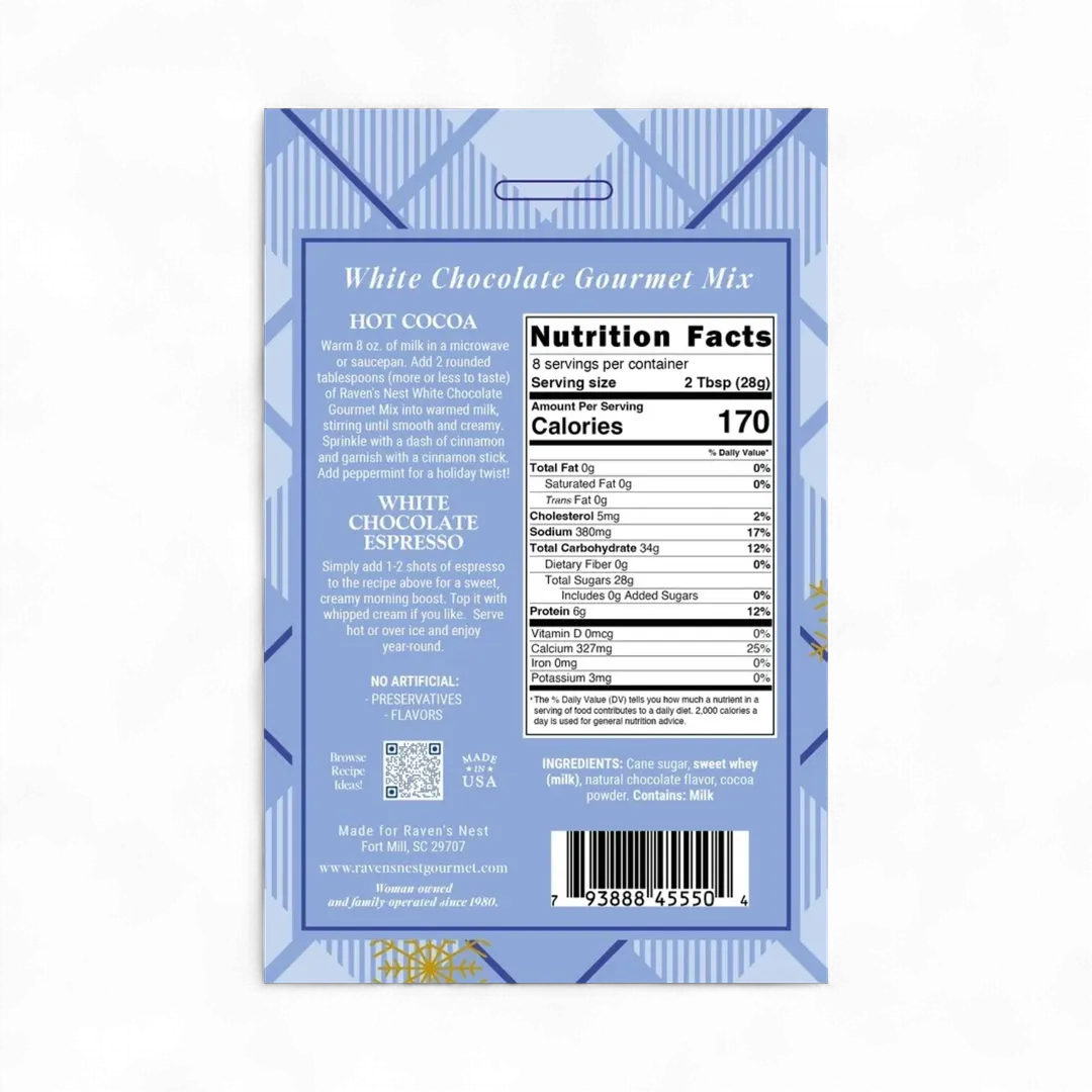 Indulge in the cozy warmth of Raven’s Nest White Hot Chocolate Gift Box, the perfect treat for every winter occasion, from Hanukkah and Christmas to New Year and beyond. Each beautifully packaged box includes 8 ounces of all-natural gourmet mix, carefully crafted to blend with milk for a creamy, comforting cocoa or a luxurious white chocolate espresso that can be enjoyed both hot and cold—anytime of year! Made with clean, all-natural ingredients and preservative-free, this decadent white hot chocolate mix is a delightful gift for anyone who loves sweet indulgence during the winter season.
