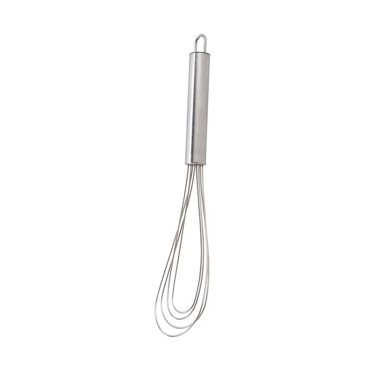 The Roux Whisk, also known as a flat whisk, is specially designed for blending silky smooth sauces and gravies. The flat profile is ideal for scraping flavorful drippings deglazed from the bottoms and corners of pans and whisking them in with other tasty ingredients. A must-have of cooking utensils for working quickly over a flame and directly in pans when making gravy, blending in thickening agents, making creamy alfredo sauce and hollandaise sauce. It works equally well for whisking fluffy eggs, whipping cream, and more. Easy to use. Simply press the wires against the bottom of the pan and use a flat, circular motion to blend to loosen caramelized ingredients and incorporate them into a smooth consistency. Made from stainless steel, this Roux Whisk is flexible, sturdy, and durable. It hangs for easy storage and is dishwasher safe for easy cleanup.